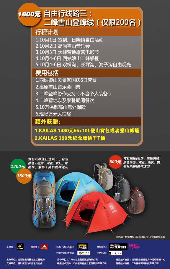 2011四姑娘山登山节活动报名请到沈阳三夫南五店,且店内有各种世界知名品牌新品上架,可以满足各种出行需求,具体详情可到店内或致电咨询