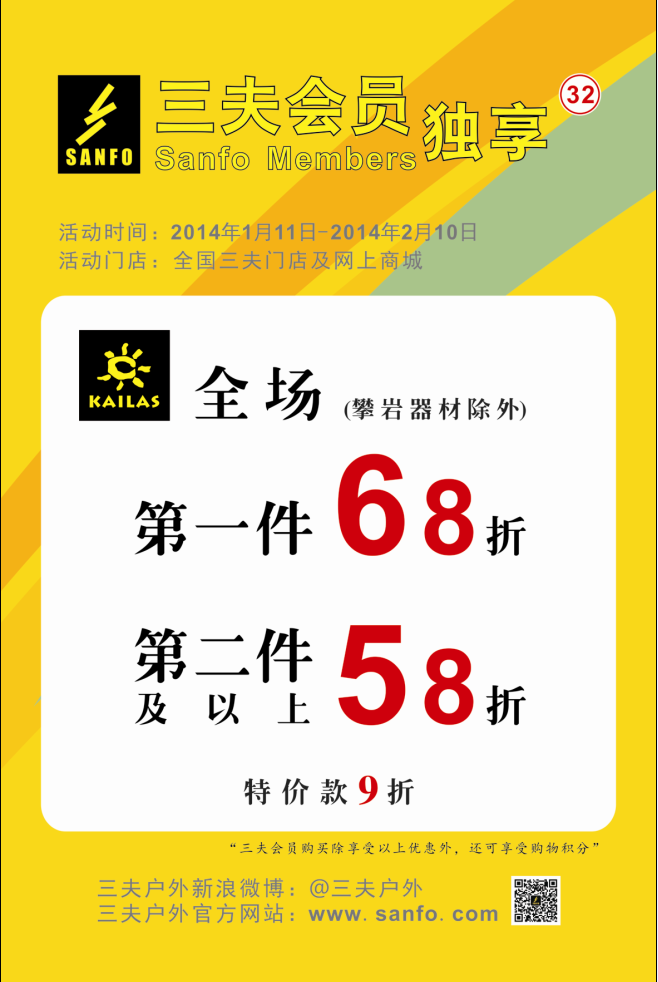Sanfo Outdoors -- The leading specialty outdoor retailer in China, it has more than 30+ high-level outdoor stores in Beijing, Shanghai, Nanjing, Hangzhou, Chengdu, Shenzhen, Shenyang, Changchun, Qingdao, Shijiazhuang, Suzhou, Wuxi etc. Please visit www.sanfo.com for more information.