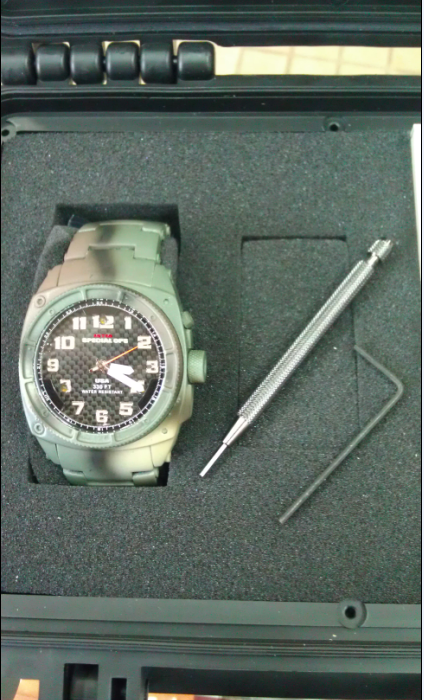 采用水晶表面,整个表壳和表带用的是坚实不锈钢,经过电镀处理过的碳纤维表盘有很好的耐撞击性。近战时作为武器也未尝不可。