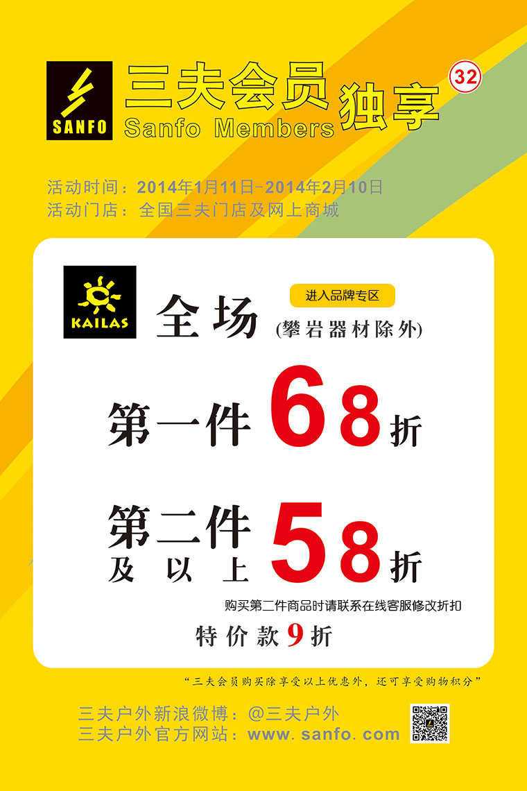 Sanfo Outdoors -- The leading specialty outdoor retailer in China, it has more than 30+ high-level outdoor stores in Beijing, Shanghai, Nanjing, Hangzhou, Chengdu, Shenzhen, Shenyang, Changchun, Qingdao, Shijiazhuang, Suzhou, Wuxi etc. Please visit www.sanfo.com for more information.