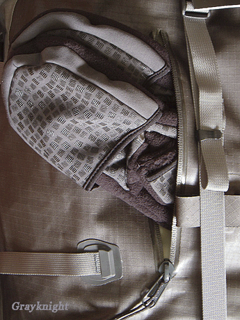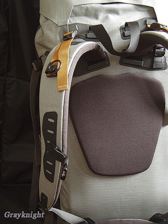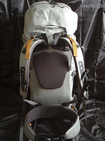 | 尽管从外观上看NAOS的背负系统简洁的要命,实际上的结构还是挺复杂的,由2根6061铝条,EVA背板,Kydex塑料支撑板叠加二成,实际背负重心控制良好,肩带感觉偏硬,较适合重装徒步。 |