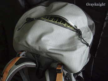 NAOS的头包基本继承了BORA系列的设计,顶部开口,超大容积,差不多能有8-10L,轻松塞进个小睡袋不成问题,但与BORA的区别还是有的:第一,防水拉练采用激光焊贴技术,第二,头包内部所有接缝全压胶,这一点的实际意义有多大令人怀疑,因为防水拉练本身只能做的防泼水,而非Waterproof