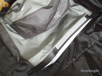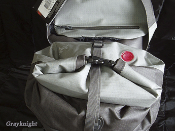 | 主包采用防水袋式卷口设计,但值得一提的是,卷口的内部硬衬由RT系列上的硬塑料条改换成了较软的硬橡胶条,RT系列上曾经出现的硬衬磨损包口的缺陷再也木有鸟~~ |