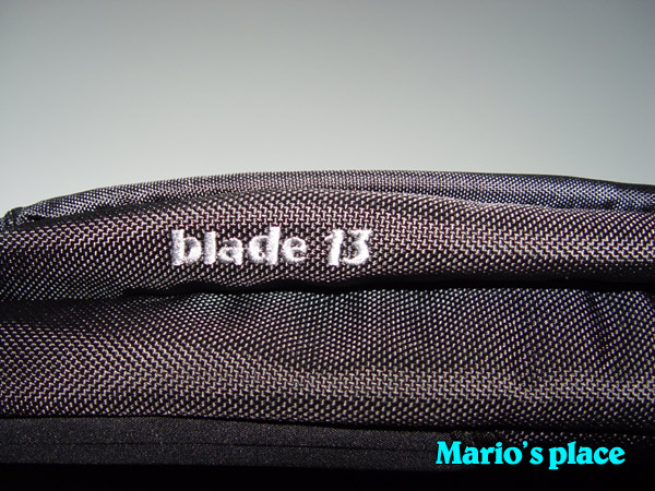 包包侧面的Blade 13 logo。 |