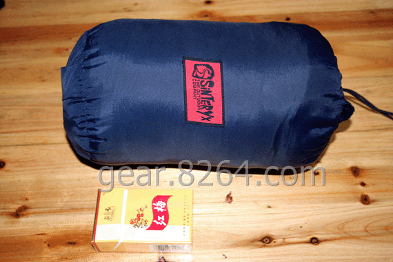 这款羽绒服是龙鸟2006年推的新产品。拿到包装就颇喜欢,简洁而方便的包装袋里,整个睡袋只有比两盒烟稍微长一点。 |