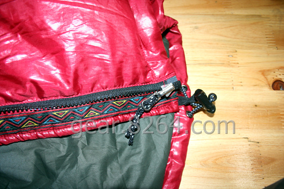 拉练采用防夹布设计,在挡风条上缝合了一跟防夹布带。YKK拉练,UTX扣件,这已经是户外用品的共识了。 |